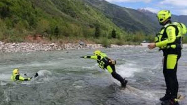 Di fronte alla forza della corrente, che rendeva impossibile l'attraversamento, gli specialisti hanno messo in atto una manovra di soccorso nota come "Telfer".