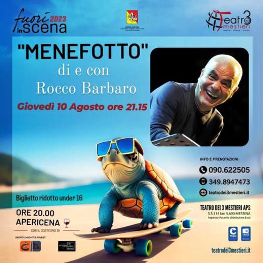 Messina, 7 agosto – Grande ritorno di Rocco Barbaro al Teatro dei 3 Mestieri con il suo spettacolo “Me ne fotto” che andrà in scena giovedì 10 agosto alle ore 21.15.