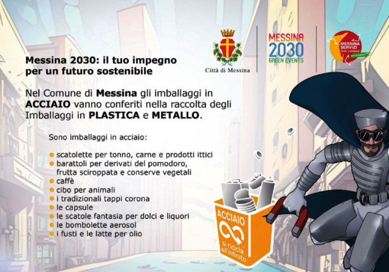 Il conto alla rovescia è ufficialmente iniziato, dal 2 al 4 ottobre prossimi Messina ospiterà Capitan Acciaio, il supereroe del riciclo, che farà tappa nella città dello Stretto per sensibilizzare i cittadini di tutte le età sui benefici della raccolta differenziata e, in particolare, sull’importanza del riciclo degli imballaggi in acciaio.