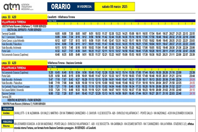 Ad una settimana dall’inaugurazione, Atm potenzia il collegamento via autostrada Messina – Villafranca. Sin dalla prima corsa, effettuata sabato 1 marzo, i cittadini hanno dimostrato di gradire particolarmente il filo diretto tra il capoluogo e il comune tirrenico tramite il servizio di trasporto pubblico locale della città di Messina e l’Azienda Trasporti, in accordo con il Comune, ha deciso di rafforzare il collegamento, impiegando per la linea 33 un secondo mezzo. La novità sarà in vigore a partire da domani , sabato L’8 marzo, farà scendere la frequenza media a 40 minuti. La prima corsa da Villafranca per Messina, con partenza dal capolinea in via Leonardo Sciascia, sarà alle ore 5.20 del mattino, mentre l’ultima corsa dal centro città verso il comune tirrenico sarà alle ore 22.55, con partenza dal terminal Cavallotti.