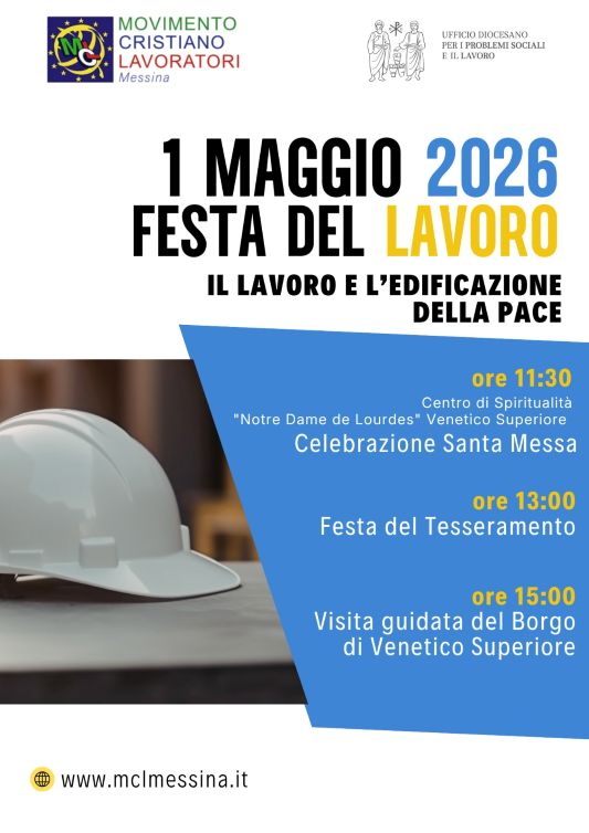 Il Movimento Cristiano Lavoratori di Messina, accingendosi a celebrare la ricorrenza, intende come sempre far proprio il messaggio dei Vescovi, condividendolo in primo luogo con l’Ufficio Diocesano per i Problemi Sociali e il Lavoro, ma anche con altre sigle del laicato messinese. Ciò al fine di amplificarlo quanto più possibile nel territorio.