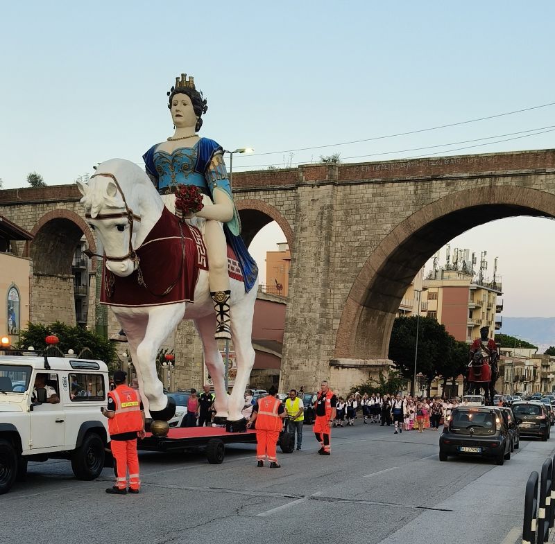 Protagonisti della serata sono stati i maestosi Giganti, simbolo identitario della nostra cultura, che hanno sfilato tra applausi e meraviglia. A seguire, il comico Sasà Salvaggio ha regalato momenti di allegria e risate, mentre il cantante Natale Munaò ha emozionato il pubblico con un repertorio che ha fatto vibrare le corde della memoria collettiva.