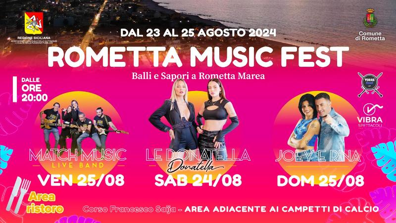 Il 23, il 24 e il 25 agosto a Rometta Marea, “Rometta Music Fest”: Musica e sapori nel week end
