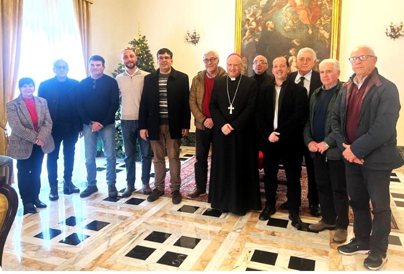 Il tradizionale (e sempre molto sentito e partecipato) appuntamento di oggi con gli auguri natalizi al Vescovo della Diocesi di Patti, Mons. Giombanco. Con la presidenza provinciale MCL guidata dal nuovo presidente Gaetano Lamberto e dal vice Ninni Romano, anche l’assistente ecclesiastico, diacono Salvatore Nolasco, e i rappresentanti dei Circoli di Patti, S. Agata di Militello e Oliveri.