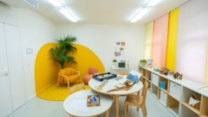 La cura nella progettazione degli spazi è parte integrante dell’approccio educativo della Fondazione: materiali selezionati, colori armonici e arredi modulabili sono stati scelti per creare un ambiente bello, accogliente e funzionale, in linea con la visione ABF, che riconosce il valore dello spazio come elemento educativo capace di sostenere benessere, creatività e relazione.