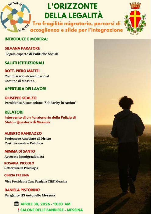 Il prossimo 30 aprile, alle ore 10:30, il Salone delle Bandiere del Comune di Messina ospiterà un importante momento di confronto e riflessione dal titolo “L’orizzonte della Legalità tra fragilità migratorie, percorsi di accoglienza e sfide per l’integrazione”.