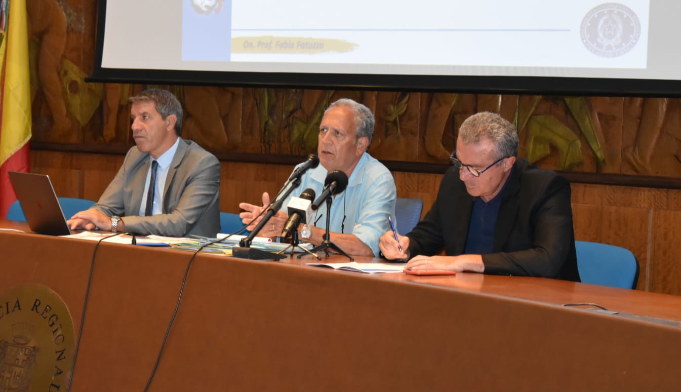 Foto: da sinistra GiuseppePollicino, capo segreteria tecnica struttura commissario, il commissario Fabio Fatuzzo e il sub commissario Toto Cordaro