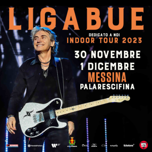 Giovedì 30 novembre e venerdì 1° dicembre Luciano Ligabue canterà al PalaRescifina di Messina per due unici appuntamenti in Sicilia. Il tour nei palazzetti del rocker emiliano, prodotto e organizzato da Friends&Partners e Riservarossa, apre le porte al più capiente Palazzetto dello sport della Città, adeguato al meglio dall’Amministrazione del sindaco Federico Basile per ospitare grandi eventi diversi dal contesto sportivo. L’evento sarà realizzato da Puntoeacapo, l’Associazione Development, Il Botteghino e GG Entertainment, in collaborazione con il Comune di Messina.