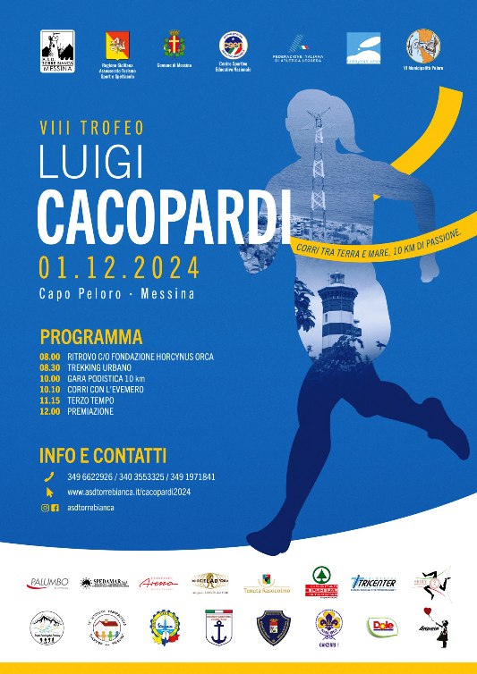 L’edizione 2024 del Trofeo Cacopardi è stata organizzata per essere non soltanto una competizione agonistica con la “10 km di Capo Peloro ”, ma anche come un evento per dare la possibilità ai partecipanti di vivere un momento di scoperta delle bellezze del borgo marinaro e della riserva della laguna di Capo Peloro con il trekking urbano. Con l’obiettivo poi di promuovere lo sport, quale stile di vita sano ed equilibrato, con particolare riferimento ai giovani, si terrà l’iniziativa “Corri con l’Evemero” organizzata dall’omonimo Istituto Comprensivo del luogo, che vedrà le alunne e gli alunni impegnati in giochi di corsa con i bambini residenti nel territorio della VI Municipalità.