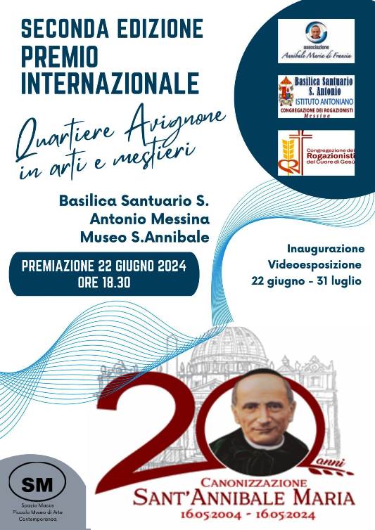 La Seconda edizione del Premio Internazionale “Quartiere Avignone in arti e mestieri” è promosso dall’Associazione Spazio Macos, con il patrocinio della Basilica Santuario Sant’Antonio di Messinae la collaborazione delle Associazioni Annibale Maria Di Francia eVisit Sicily.