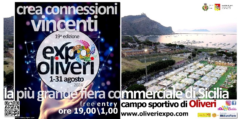 19/ 07/2024. Dall’1 al 31 agosto 2024 torna l’ExpOliveri, manifestazioneorganizzata da Eurofiere SRL arrivata alla 19^ Edizione. Appuntamento, come ogni anno, nell’area del Campo Sportivo del Comune di Oliveri, adiacente al centro abitato. Orari di apertura al pubblico: dalle ore 19:00 alle ore 1:00.