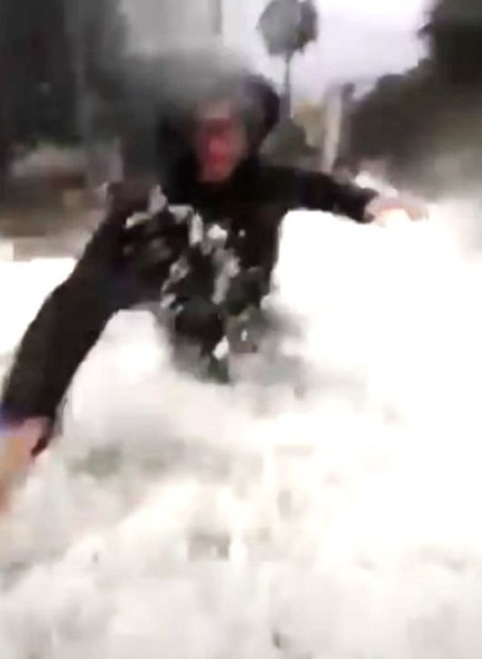 Nella foto Cateno De Luca sorpreso da un’ondata anomala durante un sopralluogo a S. Tetresa