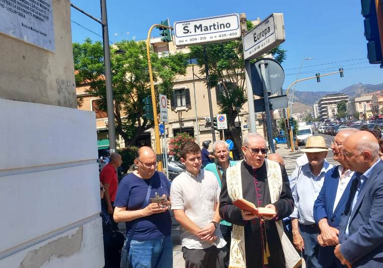 La posa della nuova targa, promossa dal presidente dell’UNITRE di Messina Maniaci, e benedetta da mons. Mario Di Pietro, parroco della Parrocchia San Giacomo Maggiore, è avvenuta sulla facciata dell’isolato 56, angolo viale Europa – viale San Martino, lato mare.