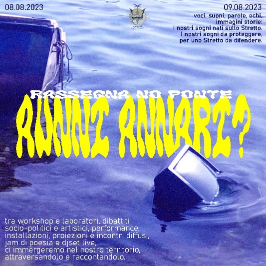 È tutto pronto per la partenza della prima rassegna No Ponte organizzata dal comitato No Ponte – Capo Peloro “Aunni Annari”, che si terrà martedì 8 e mercoledì 9 agosto a Torre Faro al Ritrovo “Km Zero” dalle 17 all’1. La due giorni tra musica, arte e dibattiti si pone l’obiettivo di sviscerare la tematica della grande opera sullo Stretto con personaggi di spicco locali e nazionali.
