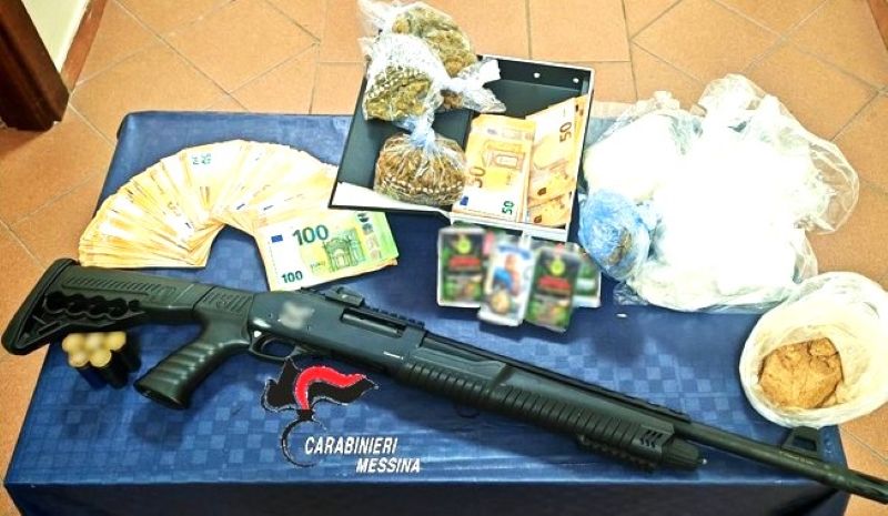 Difatti, è stato sottoposto a una perquisizione eseguita – di iniziativa degli operanti – nella sua abitazione e presso un magazzino di cui disponeva nella zona di “Bordonaro Superiore”, ove sono stati rinvenuti complessivamente quasi 1.900 grammi di cocaina, circa 650 di eroina, 750 di hashish, 220 di marijuana e materiale vario per il confezionamento delle predette sostanze, oltre a un fucile a pompa cal.12 con matricola abrasa, 5 cartucce a pallini dello stesso calibro e quasi 17.000 euro in contanti di vario taglio, ritenuti verosimilmente il provento delle attività delittuose ipotizzate.