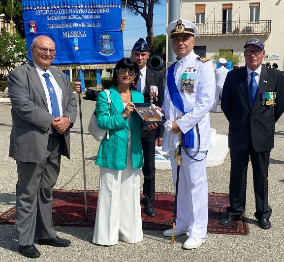 Al termine della cerimonia, il Presidente Ricciardi, insieme al Prefetto di Messina, Cosima Di Stani, socia onoraria dell’Istituto  del Nastro Azzurro, ha consegnato al Comandante Paolo Florentino il crest che riproduce l’emblema araldico dell’Istituto con a margine il periodo di comando.