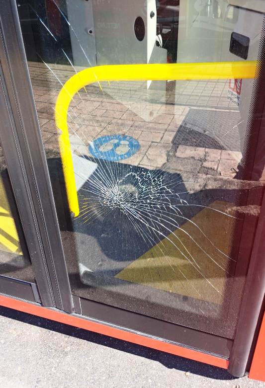 Il suddetto utente, probabilmente infuriato per aver perso la possibilità di scendere alla fermata Brasile, giunto alla fermata successiva si è avvicinato al posto guida e ha inveito contro l’autista in quel momento in servizio, sputandogli anche contro. Fortunatamente, l’operatore d’esercizio – protetto dal pannello che separa il vano conducente – non è stato colpito, ma è stato comunque pesantemente insultato. L’utente ha poi deciso di sfogare la propria rabbia prendendo a pedate la bussola anteriore del bus, danneggiando il vetro.