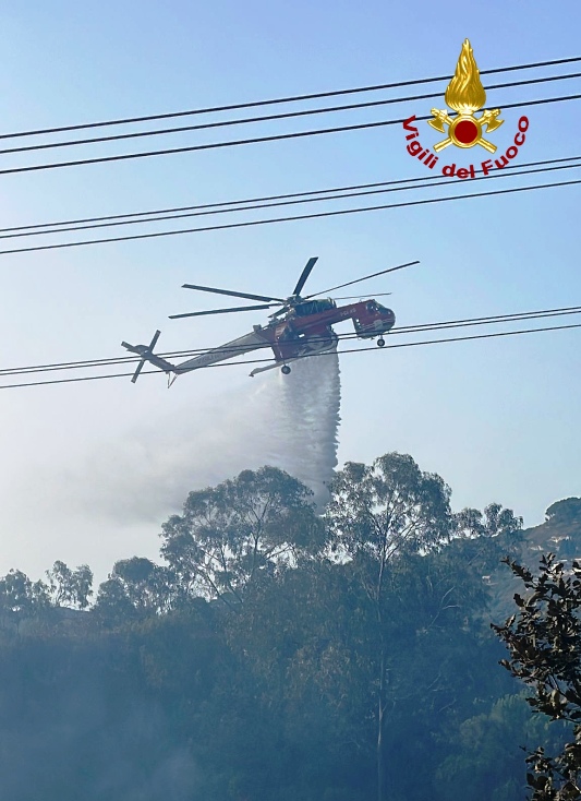 Sul lungo dell’ incendio è presente un elicottero dei Vigili del fuoco, si deve intervenire dall’ alto per la presenza dì ordigni inesplosi della seconda Guerra mondiale, tra poco dovrà anche intervenire un Canadair per cercare di circoscrivere le fiamme