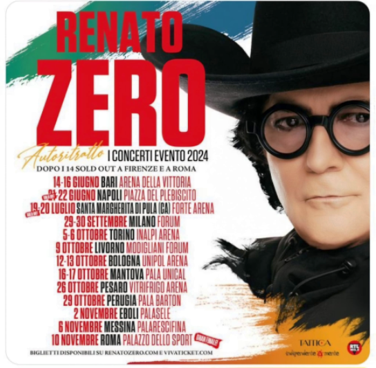 È iniziato già il conto alla rovescia nell’attesa di quella serata di Novembre al PalaRescifina, che sarà certamente un tuffo poetico ed emozionale nella “favola” del grandissimo Renato Zero e sarà un’esperienza unica e irripetibile per conoscere da vicino ed apprezzare ancora una volta l’Artista e l’Uomo che in Renato Zero sono da sempre una cosa sola.