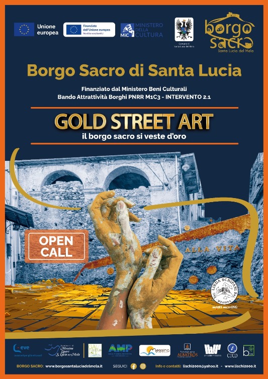 Lanciata la Open Call For Artist “GOLD STREET ART” – il Borgo Sacro si veste d’oro- per selezionare sei artisti o gruppi di artisti, di comprovata esperienza, maggiorenni e di qualsiasi nazionalità, a cui affidare sei luoghi lungo il Borgo di Santa Lucia del Mela da valorizzare con un intervento creativo in estemporanea. L’intervento rientra tra le attività “Arte, Ingegneria, Ambiente, trinomio perfetto per il rilancio culturale, sociale ed economico dei Borghi”, previste dal progetto RIGENERAZIONE CULTURALE E SOCIALE DEL BORGO SACRO DI SANTA LUCIA DEL MELA (PNRR M1C3 – 2.1 Min. Cultura –finanziato dall’Unione europea, Next Generation EU-) ed è attuato, in sinergia con il Comune di Santa Lucia del Mela, dalla Ing. Linda Schipani S.r.l., Società impegnata nel campo dell’arte e della sostenibilità. Filo conduttore del progetto di rigenerazione è l’oro, metallo prezioso, risorsa naturale, simbolo di purezza, valore e sacralità che qui è chiamato a celebrare la storia, le tradizioni e le risorse di Santa Lucia del Mela. Impreziosire oggetti, luoghi, elementi di arredo urbano che vertono in stato di degrado o comunque necessitano di interventi al fine di renderli protagonisti dello spazio che viene così rigenerato attraverso il potere creativo dell’arte. Vecchi muri, portoni di case abbandonate, panchine, pali, saracinesche o sportelli altrimenti destinati ad essere sostituiti e a diventare rifiuti, diventano il supporto pittorico per un’opera d’arte caratterizzata da cromi oro, luogo le strade del Borgo Sacro . I lavori da realizzarsi principalmente in estemporanea, si svolgeranno tra il Venerdì e la Domenica, indicativamente nel mese di aprile. Ogni artista selezionato dalla Giuria, riceverà a conclusione dei lavori un compenso di partecipazione di 1.000,00 €, attribuito nell’ambito di un evento finale alla presenza delle Istituzioni locali, della Giuria e dei visitatori. C’è tempo quindi fino al giorno 1 marzo per presentare la propria candidatura e partecipare alla rigenerazione artistica di un luogo ricco di storia, tradizione e sacralià quale è Santa Lucia del Mela in provincia di Messina.
