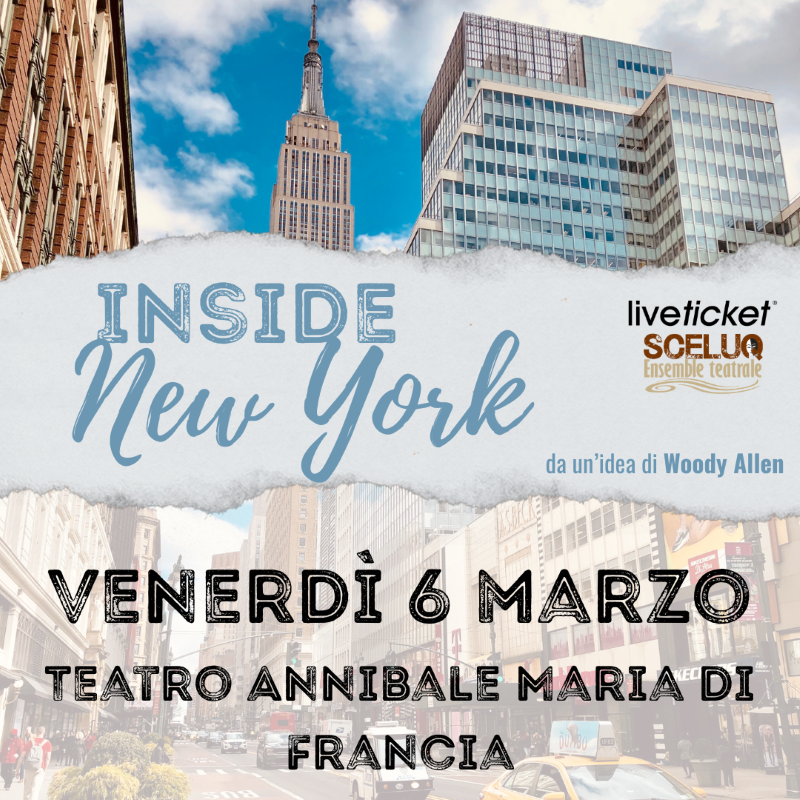 Dopo il successo di questa estate al Giardino Corallo con la replica scoppiettante di “DOC – Disturbi Ossessivo Compulsivi”, Sceluq torna al teatro Annibale Maria di Francia con uno spettacolo divertente e originale. Inside New York racchiude in un unico atto tutta la sagace comicità del maestro Woody Allen. Una storia intrisa di tradimenti, sotterfugi e bugie spietatamente messi a nudo in un sottile gioco al massacro che culmina in un finale scoppiettante e fatalmente risolutivo. Due coppie e una giovane e procace fanciulla sono i protagonisti di una commedia divertente, ironica e stuzzicante. “L’arte della risata altro non è che un gioco sapiente, articolato fra umorismo e comicità, una complessa combinazione, che può nascere da un medesimo frangente di aspetti ed elementi ma che va in direzioni diverse: l’umorismo, infatti, fa riflettere e sorridere, a volte amaramente. La comicità, invece, fa ridere anche a crepapelle e stempera qualsiasi tensione. Esistono tanti modi di ridere e sono tutti giovevoli al buon umore. Ridere è terapeutico, come il teatro!”, questo il commento della regista Matilde Perissinotti Bisoni che confeziona questa pièce, conferendo a Sceluq l’esclusiva di aver messo in scena a Messina questo genere teatrale. Per tutti gli amanti di Woody Allen e per coloro che hanno voglia di divertirsi a teatro Inside New York rappresenta un appuntamento unico e imperdibile. Il cast è composto dalla compagine ormai consolidata di Sceluq ensemble teatrale: Sabrina Sciabà, Nella Sgroi, Enrico Saglimbeni, Nino Santamaria e Adriana Malignaggi. Aiuto regia Rosy Romeo e direttore di scena Irene Bruno. Manager di produzione Piero Pino. I biglietti per i posti numerati sono disponibili sul circuito on line LiveTicket e presso i punti vendita autorizzati, oltreché presso il botteghino del teatro Annibale Maria di Francia il martedì e il giovedì dalle 16,00 alle 19,00, il mercoledì, venerdì dalle 9,00 alle 12,00 oppure la sera dello spettacolo.