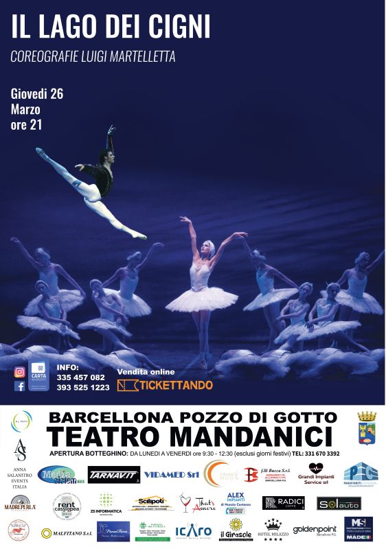 Giovedì 26 marzo 2026 arriva al Teatro Mandanici di Barcellona Pozzo di Gotto (ME) uno dei capolavori assoluti della danza classica: Il Lago dei Cigni, sulle celebri musiche di Pëtr Il’ič Čajkovskij, presentato dalla Compagnia Almatanz con la coreografia di Luigi Martelletta. Considerato il balletto più famoso e amato del repertorio classico, Il Lago dei Cigni racconta la struggente storia del principe Siegfried e della principessa Odette, vittima di un incantesimo che la condanna a vivere come cigno durante il giorno e a riacquistare forma umana solo nelle ore notturne.