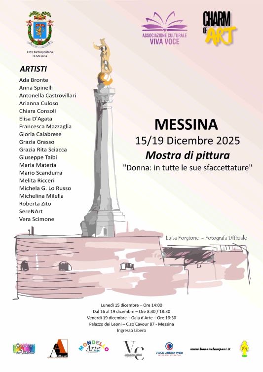 Un viaggio artistico dedicato all’universo femminile in tutte le sue forme, emozioni e colori: dal 15 al 19 dicembre 2025, la prestigiosa cornice del Palazzo dei Leoni (C.so Cavour 87, Messina) ospiterà la mostra collettiva “Donna: in tutte le sue sfaccettature”, promossa da Viva Voce & Charm Of Art.