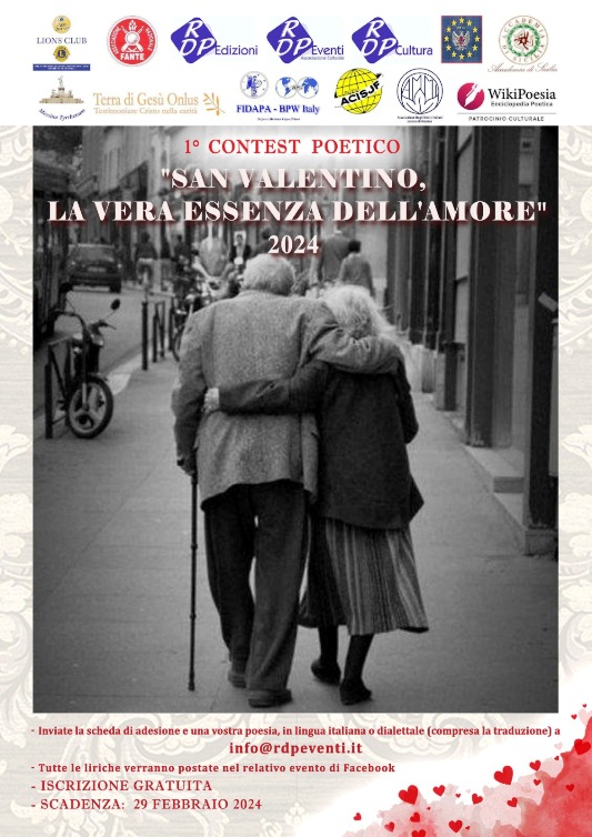 L’Associazione Culturale “RDP Eventi” comunica l’apertura del 1° Contest Poetico “San Valentino, la vera essenza dell’Amore” 2024, al quale potranno partecipare poeti provenienti dall’Italia e dall’estero.