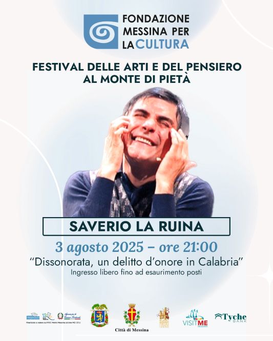Il cartellone di appuntamenti estivi promossi dalla Fondazione Messina per la Cultura, in sinergia con l’Amministrazione comunale e la Città Metropolitana di Messina, prosegue con l’evento in programma domenica 3 agosto, alle ore 21.00, al Monte di Pietà di via XXIV Maggio, nell’ambito della rassegna “Festival delle Arti e del Pensiero”.