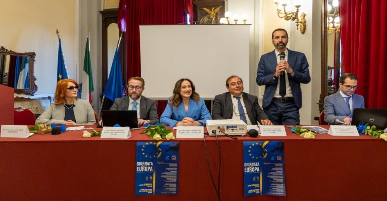Nel Salone degli Specchi di Palazzo dei Leoni, gremito di pubblico, si è svolta stamani, in occasione della “Giornata dell’Europa”, la “Festa dell’Europa per la pace e l’unità”.