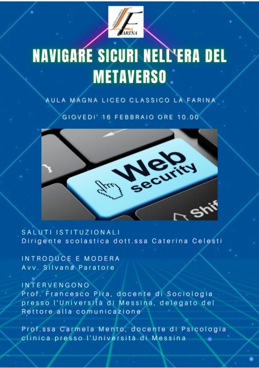 Si terrà giovedì 16 febbraio alle ore 10:00 nell’Aula magna del Liceo classico La Farina di Messina l’incontro sul tema “ Navigare sicuri nell’era del metaverso”.