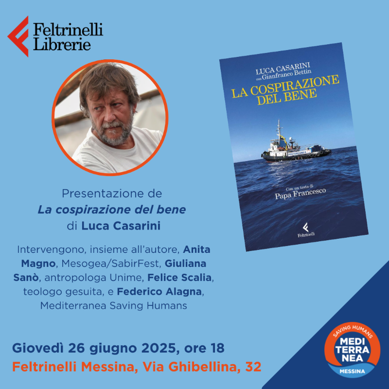 Giovedì 26 giugno 2025 alle ore 18, presso la Feltrinelli di Messina (Via Ghibellina 32), si terrà la presentazione del libro La cospirazione del bene di Luca Casarini, scritto insieme a Gianfranco Bettin, con un contributo di Papa Francesco.