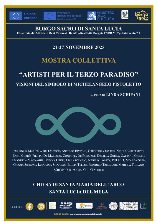 Prende vita in Sicilia nel Borgo Sacro di Santa Lucia del Mela, in provincia di Messina, la mostra collettiva “Artisti per il Terzo Paradiso”, dedicata all’iconico simbolo ideato dal Maestro Michelangelo Pistoletto, protagonista dell’arte povera, già candidato al Nobel per la Pace.