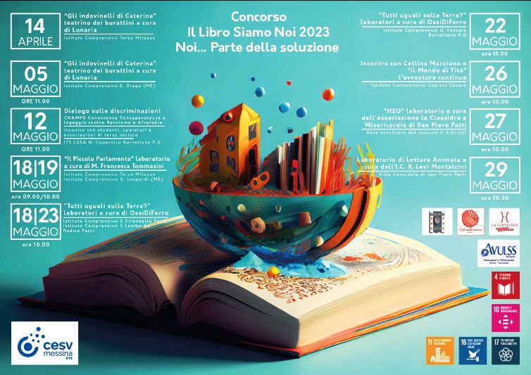 Centinaia gli studenti coinvolti nell’edizione 2023 de “Il libro siamo noi”, il concorso per le scuole promosso dal CESV Messina ETS e intitolato quest’anno “Noi, parte della soluzione”. Edizione alla quale hanno aderito gli istituti comprensivi Enzo Drago e Giacomo Leopardi di Messina, il Capizzi -Cesarò, U. Foscolo di Barcellona Pozzo di Gotto, il Terzo di Milazzo, Pirandello e Lombardo Radice di Patti, R. Levi Montalcini di San Piero Patti, il Liceo Vittorio Emanuele III di Patti, l’IIS Borghese Faranda di Patti e l’ ITT LSSA Copernico di Barcellona Pozzo di Gotto.