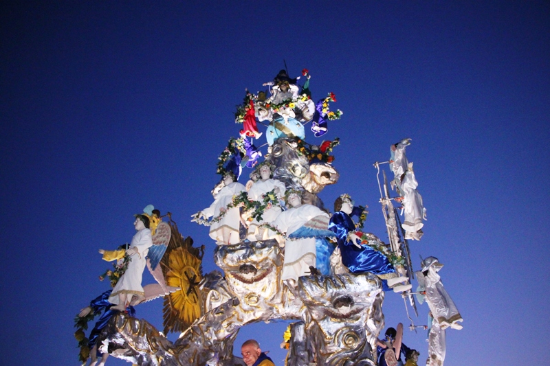 Al fine di recuperare l’antica simbologia nella quale “Gesù porge l’Anima di Maria a Dio Padre”, raffigurata nella parte sommitale del Portale del Duomo, secondo i canoni del Teatro Mobile del XVI secolo, su indicazione dell’assessore alla Cultura Enzo Caruso, d’intesa con il sindaco Federico Basile e l’assessore Massimiliano Minutoli, il carro Votivo della Vara stamani, a cura della ditta Edilav, è stato ruotato di 90° e rivolto verso la facciata della Cattedrale, prospiciente il Portale, secondo quanto raffigurato nelle stampe pre-terremoto di Michele Pianebianco, Giovan Francesco Boccaccini e di altri autori di litografie del tempo. Purtroppo il nuovo percorso della via Garibaldi, rispetto a quello pre-terremoto che si svolgeva sull’attuale via Cavour, non ha più consentito di fare arrivare la Vara in piazza Duomo nella posizione corretta.