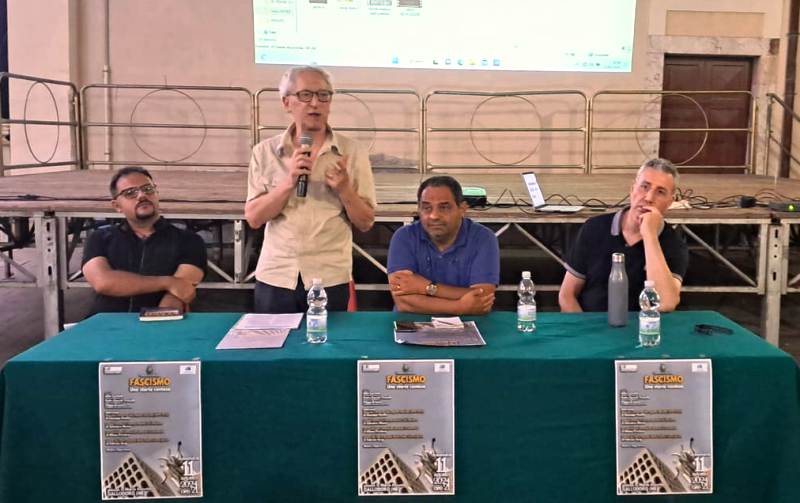 Salvatore Mosca, ideatore e coordinatore dell’incontro, ha poi elencato tantissimi luoghi comuni del fascismo, alcuni veri (bonifiche, architettura e tutela urbanistica, codici, scuola, colonie estive), altri enfatizzati e molte del tutto falsi, tra cui soprattutto le pensioni, introdotte in Italia “già dalla legge 70 del 1895, poco dopo la Germania”. Ha anche evidenziato le interpretazioni date al fascismo da molti storici tra cui Benedetto Croce, in un primo momento favorevole (lettera a Nitti del 1923), ma dopo il 1924 si smarca, assumendo una posizione critica e diventando bersaglio della stampa fascista. Mosca ha anche evidenziato la “parabola” di De Felice, ritenuto lo storico del fascismo ma che si espresse in toni molto critici su quell’esperienza e su Mussolini (“più che un grande politico creatore, Mussolini è stato un distruttore”).