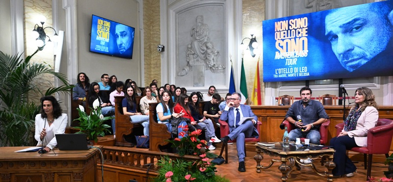 Un’Aula Magna gremita di studenti, giovani appassionati e docenti ha ospitato il regista e attore Edoardo Leo che ha fatto tappa anche all’Ateneo di Messina per portare avanti il suo Masterclass Tour nelle Università italiane e interagire con gli studenti e le studentesse sui temi caldi del suo ultimo film “Non sono quello che sono” tratto da “Otello” di W. Shakespeare.