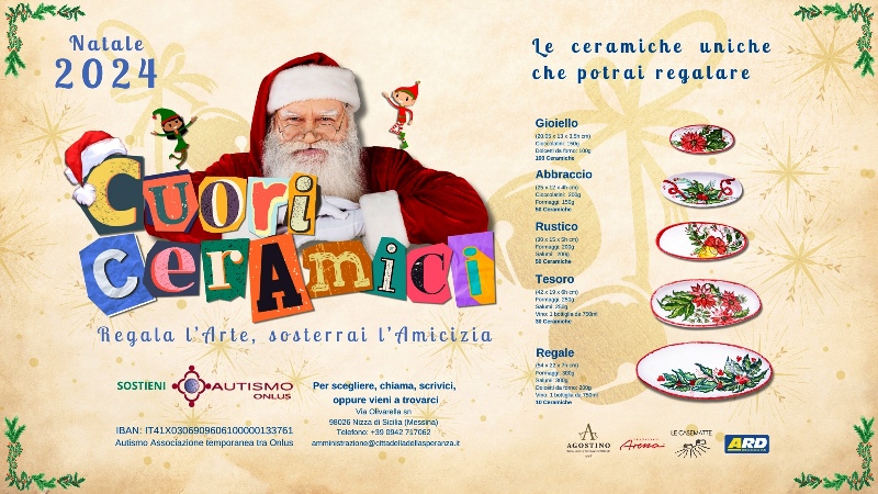 C’è molto di questo nello spirito che anima la campagna di fundraising ‘Cuori CerAmici’ ideata, per questo Natale, dalla Onlus Autismo del Centro diurno Nizza di Sicilia (Messina).