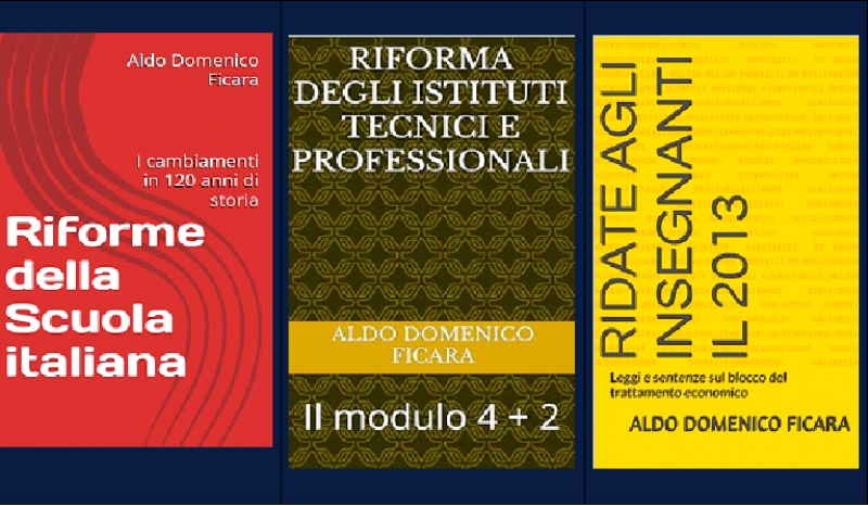 I libri digitali di Aldo Domenico Ficara dal titolo ” Riforme della Scuola Italiana: i cambiamenti in 120 anni di storia “, “ Ridate agli insegnanti il 2013: Leggi e sentenze sul blocco del trattamento economico “, “ Riforma degli Istituti Tecnici e Professionali: il modulo 4 + 2 “ sono disponibili nello store libri di Amazon. Queste sono le prime pubblicazioni di una serie appartenente all’iniziativa culturale “Ama.LaScuola ” ( Un progetto ideato dal Prof Aldo Domenico Ficara ( CEO di Regolarità e Trasparenza nella Scuola ) che prevede una serie di pubblicazioni di libri digitali distribuiti in ogni parte del mondo attraverso il portale Amazon Libri Store ( Ama oltre al verbo amare indica una sorta di troncamento del nome Amazon ). Per comprendere meglio queste opere di normativa scolastica riportiamo il contenuto delle loro sinossi: