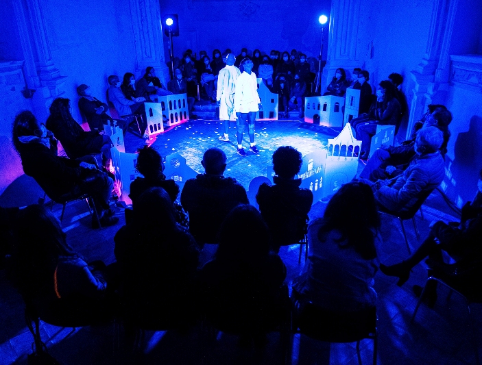 Per la prima volta sarà utilizzata la location del Cortiledel Palazzo dei Leoni (Città Metropolitana di Messina), in corso Cavour. La performance, ideata e diretta da Giuseppe Provinzano,è interpretata, tra cuntu e danza, da Federica Aloisio e Roberto Galbo. La rassegnadi drammaturgia contemporanea è organizzata dall’associazione