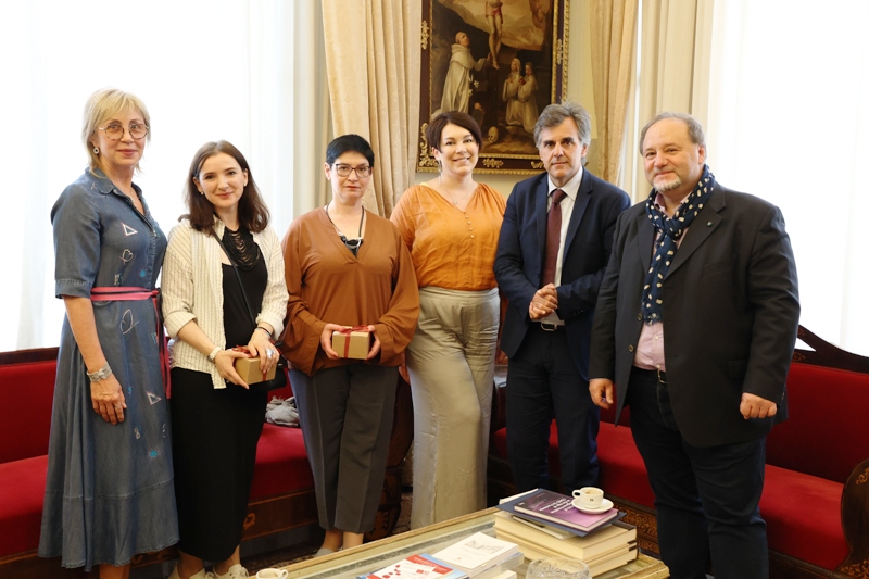 Il Rettore, prof. Salvatore Cuzzocrea, ha ricevuto le docenti ucraine Sonya Koshkina, (prof.ssa di giornalismo Università Nazionale di Kyiv), Halyna Usatenko e Oksana Pryjmak (prof.sse dell’Istituto di Filologia dello stesso Ateneo). Durante l’incontro, tra le altre cose, si è discusso della guerra e di quanto la cultura possa essere un’arma potente per combatterla.