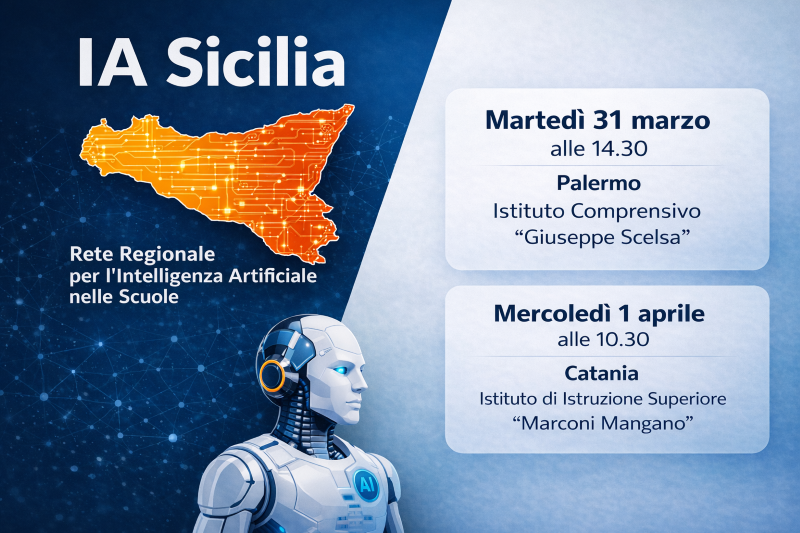 Palermo: L’Intelligenza Artificiale entra ufficialmente nelle scuole siciliane come strumento per la didattica e la gestione amministrativa. Martedì 31 marzo, alle 14.30, a Palermo, presso l’Istituto Comprensivo “Giuseppe Scelsa” e Mercoledì 1 aprile, alle 10.30, a Catania, nella sede dell’Istituto “Marconi Mangano”, verrà presentataIA Sicilia”, la prima rete regionale creata per guidare le scuole nell’uso corretto e organizzato di questa tecnologia.