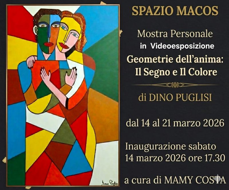 Sabato 14 marzo, alle ore 17.30, nelle sale espositive di Spazio Macos (Messina, Via Cardines 16) sarà inaugurata la Mostra Personale in Videoesposizione “Il Segno e Il Colore”di Dino Puglisi -che vive e lavora a Catania- dal titolo “Geometrie dell’anima”, curata e allestita dalla d.ssa Mamy Costa.