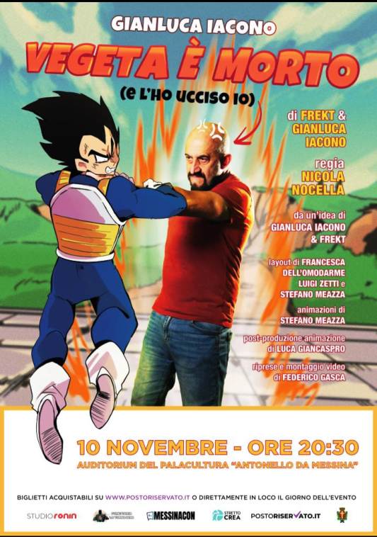 Dopo il successo al MessinaCon 2023, Gianluca Iacono (doppiatore storico di Vegeta e di Gordon Ramsay) porta a Messina il 10 Novembre lo spettacolo teatrale “Vegeta è morto (e l’ho ucciso io)”.