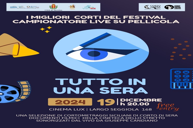Giovedì 19 Dicembre, dalle 20.00 al Cinema Lux di Messina, Corto di Sera presenta Suoni/Corti/Archivi. Tutto in una sera. La proiezione speciale rientra nel programma finanziato dal Comune di Messina nell’ambito degli Eventi Musicali, Artistico-culturali, dell’Artigianato, Antichi Mestieri e Tradizioni Popolari, Animazione Territoriale per la promozione dello sviluppo economico del territorio della Manifestazione “Natale a Messina 2024”.