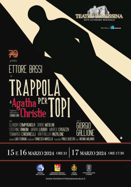 Da venerdì 15 marzo alle 21, con repliche sabato 16 alle 21 e domenica 17 alle 17.30, continua la stagione di prosa con “TRAPPOLA PER TOPI” di Agatha Christie con Ettore Bassi per la regia di Giorgio Gallione, traduzione e adattamento di Edoardo Erba.