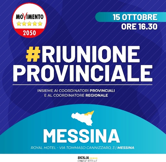 Messina, 12 ottobre – Il Royal Palace Hotel di Via Tommaso Cannizzaro ospiterà domenica 15 ottobre alle 16.30 la riunione provinciale del Movimento 5 Stelle di Messina.