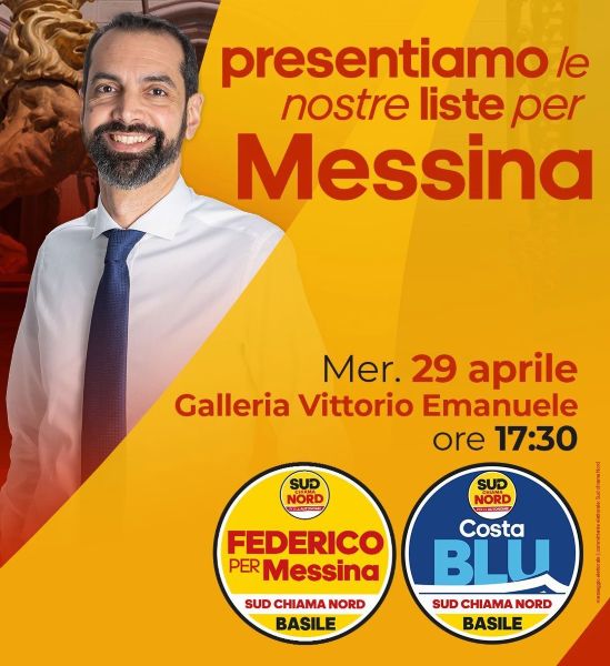 Si terrà mercoledì 29 aprile alla Galleria Vittorio Emanuele alle 17.30 la presentazione delle liste “Federico per Messina” e “Costa Blu”.