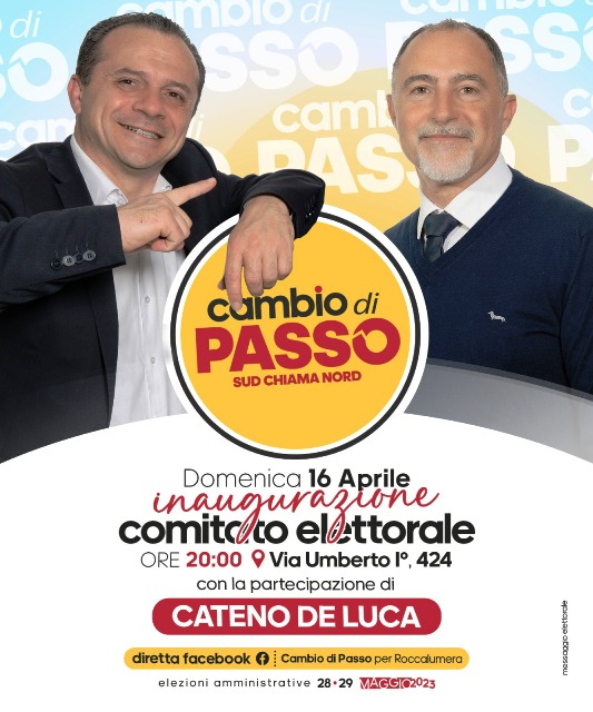 Sarà inaugurato ufficialmente domani il comitato elettorale di Giuseppe Lombardo, candidato sindaco di Roccalumera alle prossime elezioni amministrative del 28 e 29 maggio. “Un cambio di passo per la comunità è il mio obiettivo- spiega Lombardo-. È questo lo spirito che mi ha spinto a mettere al servizio di Roccalumera il mio impegno politico accogliendo l’invito che mi è stato rivolto da più parti e mettendoci la faccia ancora una volta”. L’appuntamento è per domani alle 20 in via Umberto I, 424. Sarà presente anche il leader di Sud chiama Nord Cateno De Luca.
