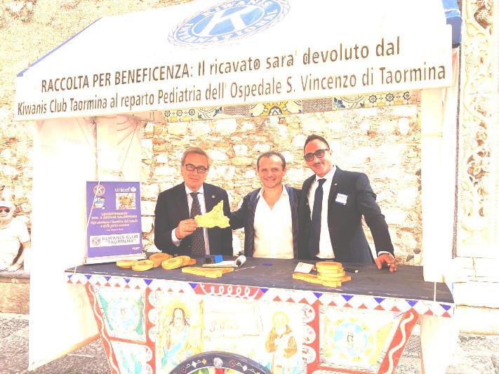 Segna un altro successo la raccolta fondi di beneficenza organizzata dal Kiwanis Club di Taormina per i bambini dell’Ospedale San Vincenzo. Per la seconda volta grazie a un “carrettino siciliano” posizionato nello spazio concesso dall’amministrazione comunale sul corso principale, tanti cittadini e turisti hanno lasciato del denaro in beneficenza per il reparto di pediatria dell’Ospedale. Anche il Sindaco di Taormina Cateno De Luca ha voluto contribuire personalmente con una donazione generosa all’iniziativa benefica destinata ai più piccoli. Molti soci kiwaniani provenienti da tutta Italia, dalla Svizzera e dagli Stati Uniti, in particolare da New York e dalla California, mentre erano in vacanza nella perla dello Ionio, hanno lasciato un’offerta libera per la raccolta fondi di beneficenza. Come testimonianza dell’iniziativa benefica ai numerosi donatori, sono stati omaggiati di un souvenir artigianale riproducente la Sicilia in legno. Un ringraziamento particolare per l’aiuto e il supporto, va al Comune di Taormina, il Comando dei Vigili Urbani e al Monsignor Carmelo Lupò della Basilica Cattedrale San Nicolò di Bari, Duomo di Taormina.